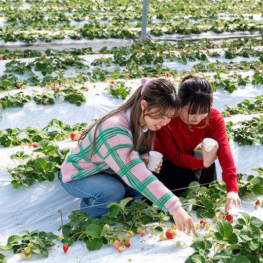 約30000㎡の広さを持つ当園では、「ぶどう」「柿」「いちご」のフルーツ狩り体験を楽しむことができます。